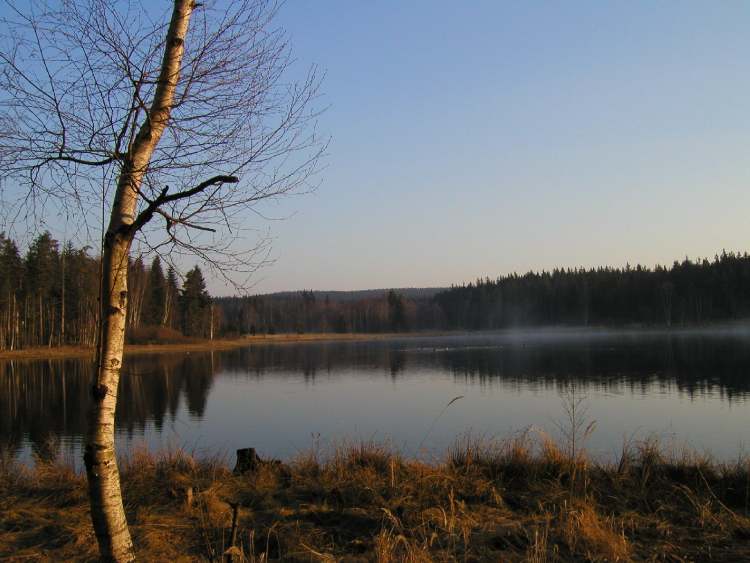 Waldsee im Erzgebierge bei Elterlein im Morgenlicht