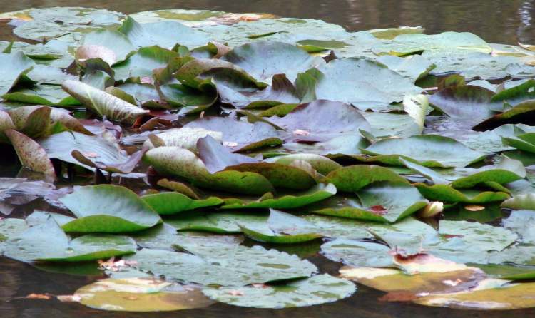 Seerosenblätter im herbstlichen See (Bitte hier klicken um dieses Bild in seiner vollen Größe zu betrachten)